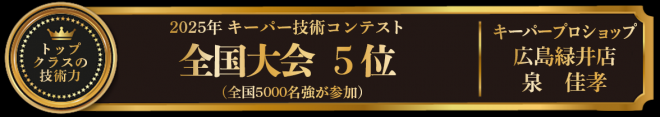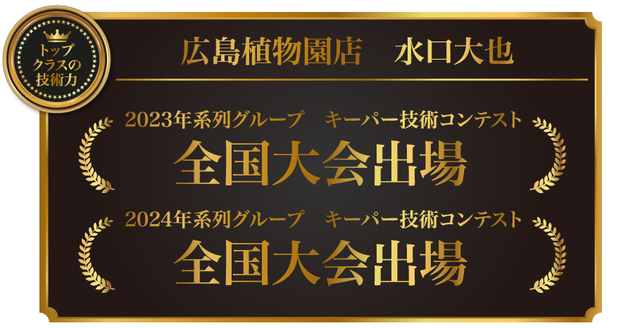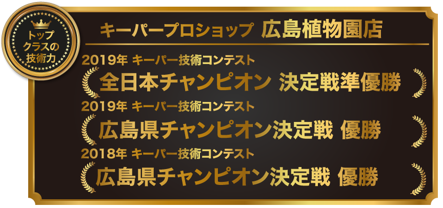 広島緑井店には、EXキーパー資格者2名、キーパーコーティング技術1級資格者5名、広島植物園店には、EXキーパー資格者2名、キーパーコーティング技術1級資格者4名が在席しております。
